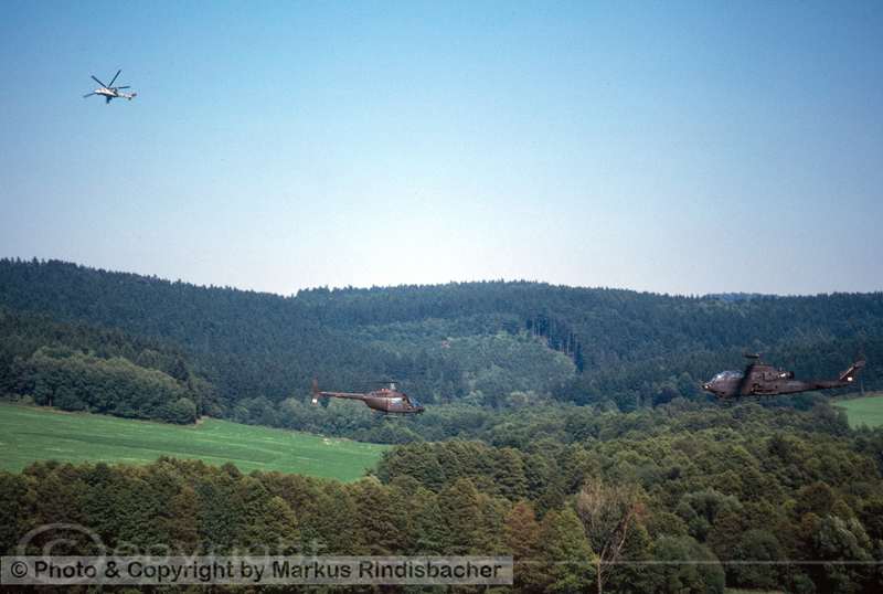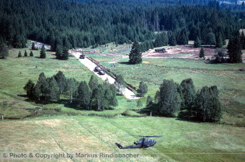 Ein Patroullienflug an die Tschechische Border mit der US Army. Nebst der Bell AH-1 Cobra S einer Bell OH-58 Kiowa und einer Sikorsky Black Hawk UH-60 wurde eine Zone von Hof in Bayern bis nahe der Grenze zu Oesterreich kontrolliert. Unter anderem sahen wir eine Baustelle, die von der Tschechischen Armee Richtung Westen ging... Grund; unbekannt. Zudem hatten wir Sichtkontakt zu eine MIL MI-24 Hind und einer Aero Albatros L-39 "Maya".